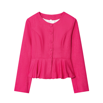 Pembe renk ekip boyun tek göğüslü uzun kollu rahat moda ceket kadınlar için