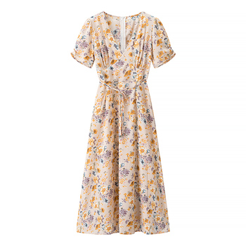 2 Colorway طباعة الأزهار طويلة الأكمام الخامس الرقبة الجبهة الدانتيل يصل عارضة الموضة المرأة البوهيمي فستان ماكسي