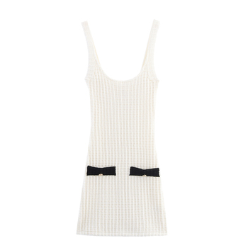 White Color Plaid Pattern Knitted Casual Fashion Mini tank Top Dress for Women
